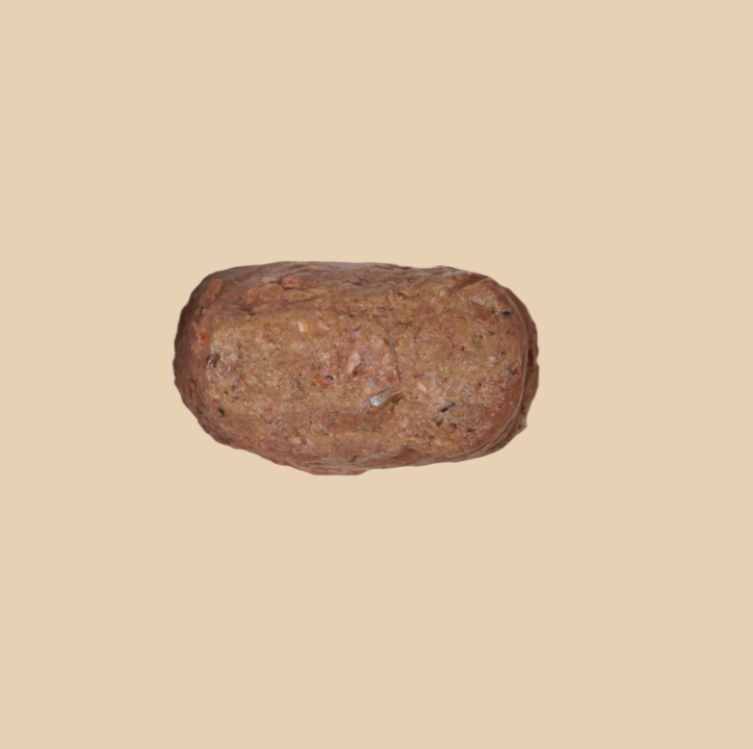 Our Sensitive Skin raw food diet contains excellent sources of anti-inflammatory omega-3 fatty acids from whole salmon. Turmeric lends its anti-inflammatory powers to this recipe. These ingredients are responsible for promoting healthy skin, a healthy soft and shiny coat and a stronger immune system, all working together towards healing and reducing the likelihood of future skin issues. This unique recipe is also suitable for dogs requiring anti-inflammatory dietary support for joint health.