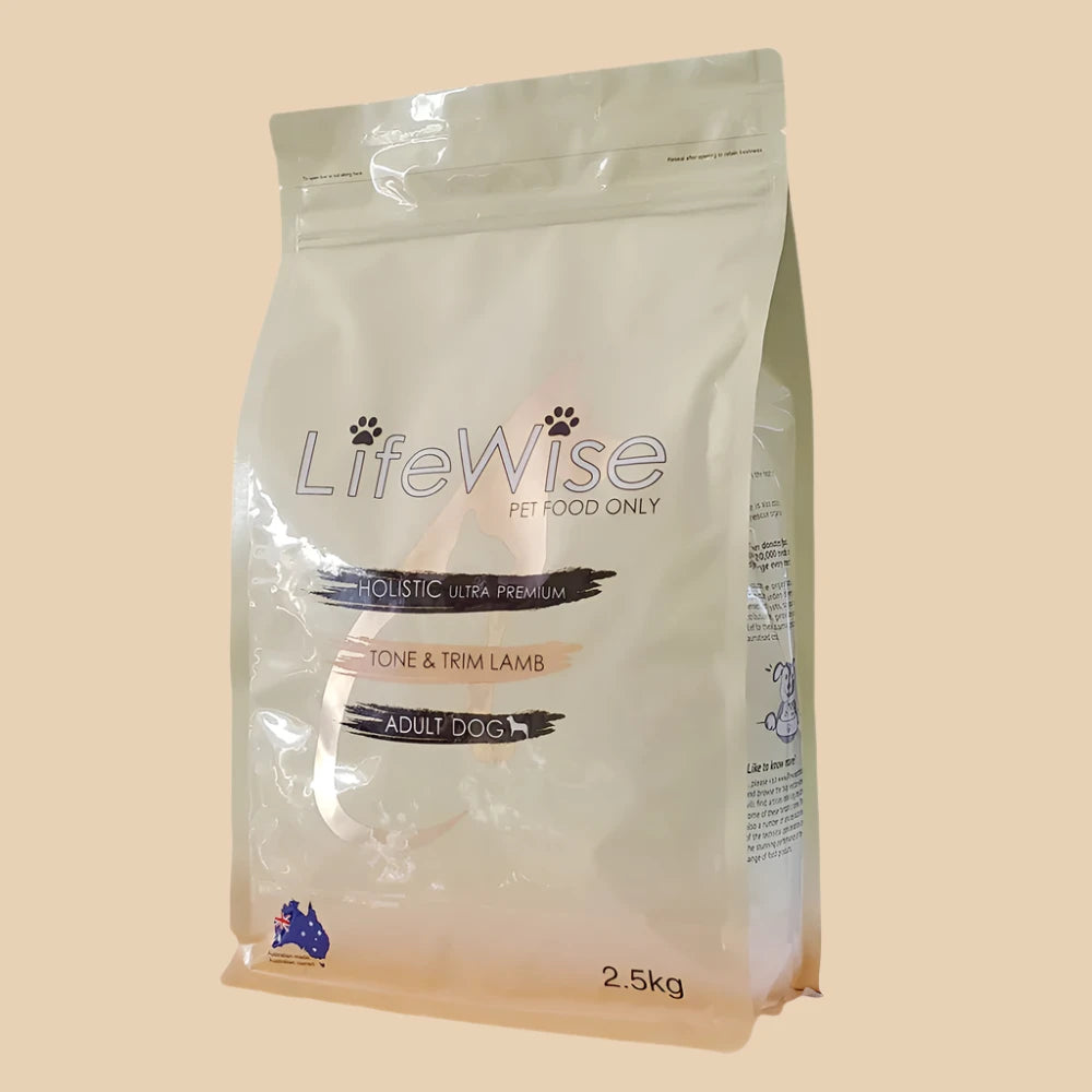 Australian lamb, lamb fat stabilised with vitamin E and rosemary oil, oat groats, rice, narrow leaf lupins, alfalfa, kelp, carrots, spinach, parsley, yeast cell wall extract, vitamins A, C, D3, E, K, B1, B2, B6, B12, niacin, folacin, pantothenate, biotin and natural organic acids, plus minerals calcium, phosphorus, sodium, copper, zinc, iron, manganese and iodine. Also contains natural flavours and Yucca schidigera extract.