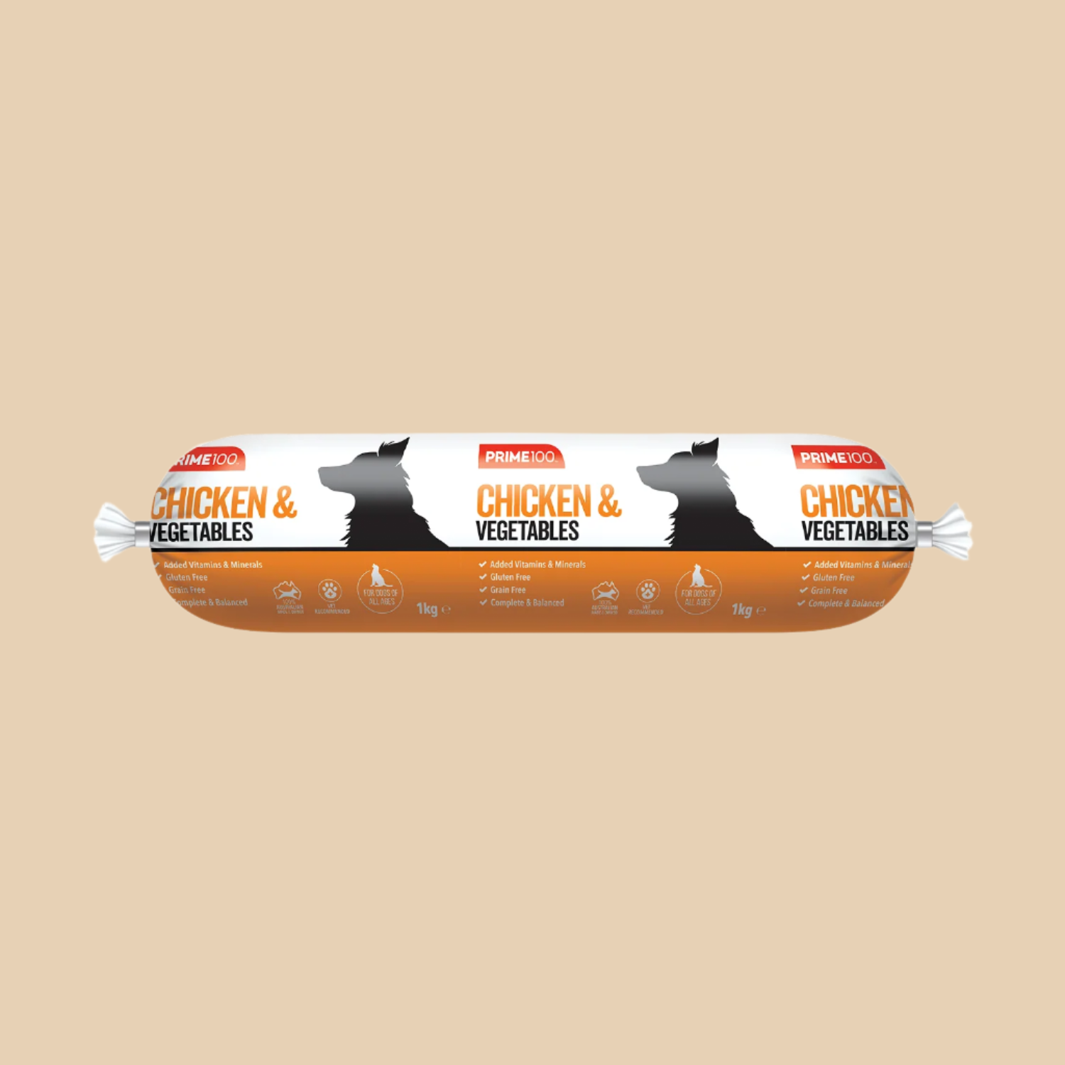 Made with 100% Australia Chicken and Vegetables to provide a rich source of meat protein, amino acids, and essential nutrients for muscular development. Prime100 cooked rolls are grain free, gluten free and have no artificial colours and flavours - Available in 1kg, 2kg & 3kg.